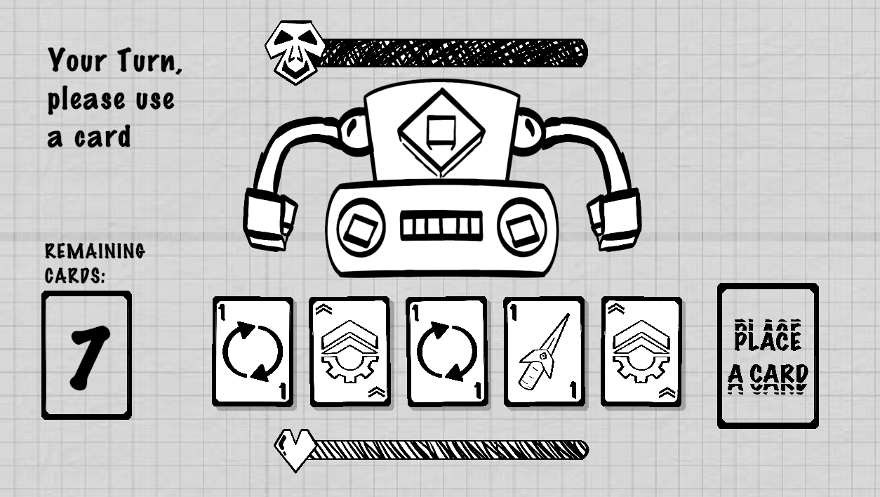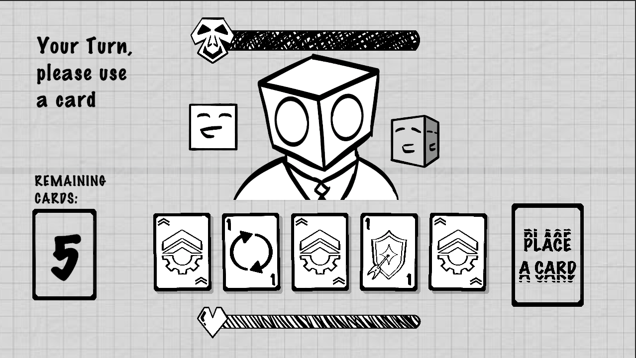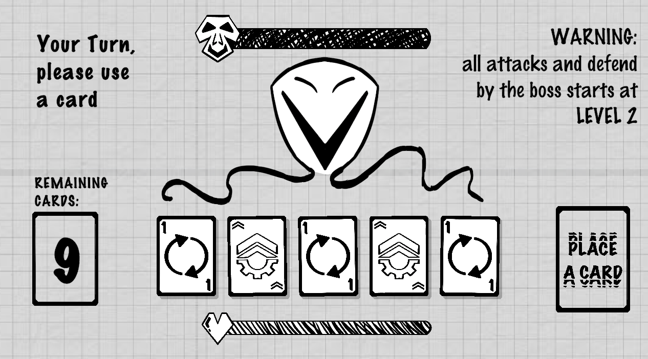 You have limited cards. Your health is little. Try to plan out your actions to loop for a powerful move!